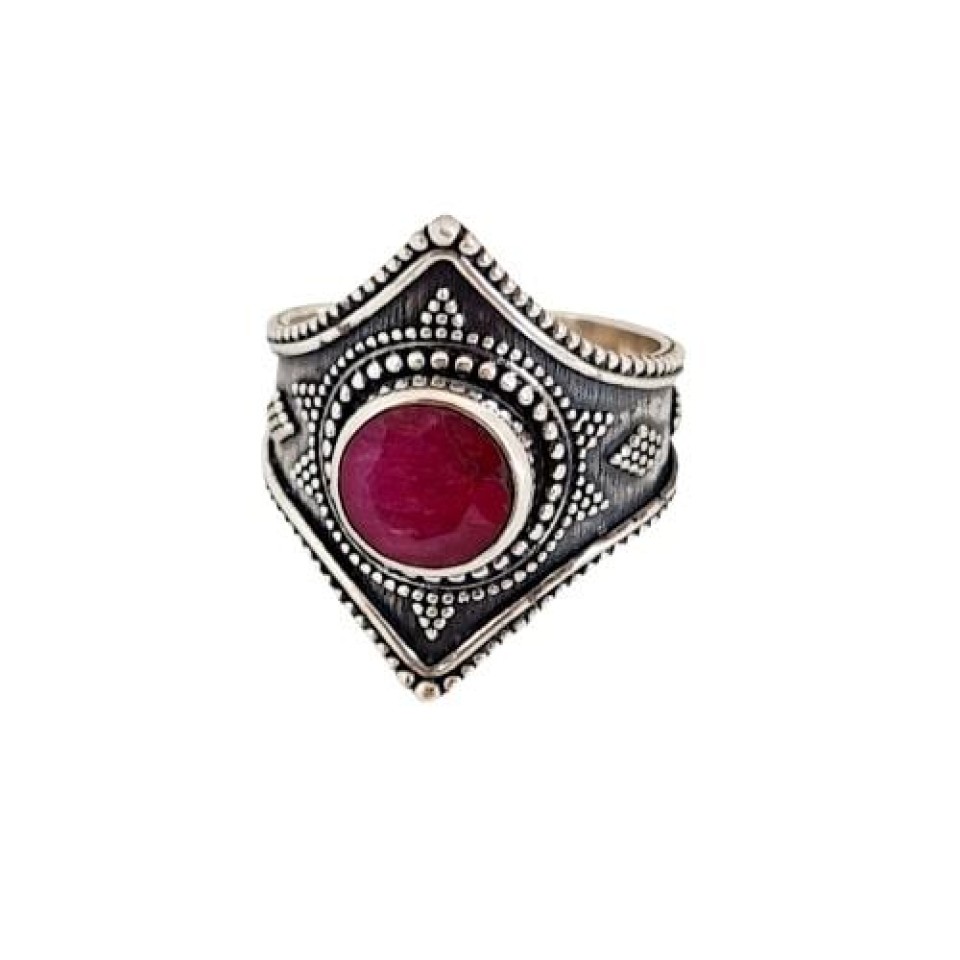 Anel Rubi Redondo Aro Envelhecido Prata BaliConfira opiniões e avaliações de clientes!