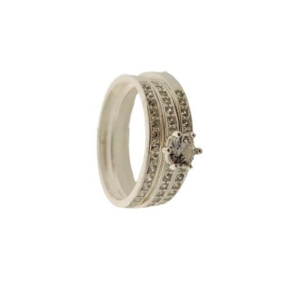 Anel Triplo Solitário e Aparador Cravejado ZircôniasConfira opiniões e avaliações de clientes!