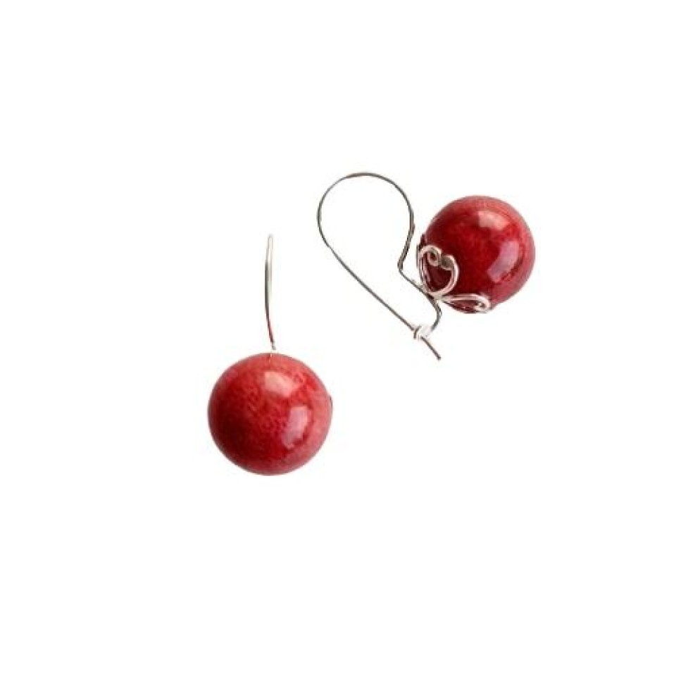 Brinco Gancho Bola Coral Vermelho