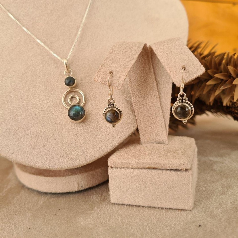 Conjunto Prata 925 Pedra Natural LabradoritaConfira opiniões e avaliações de clientes!