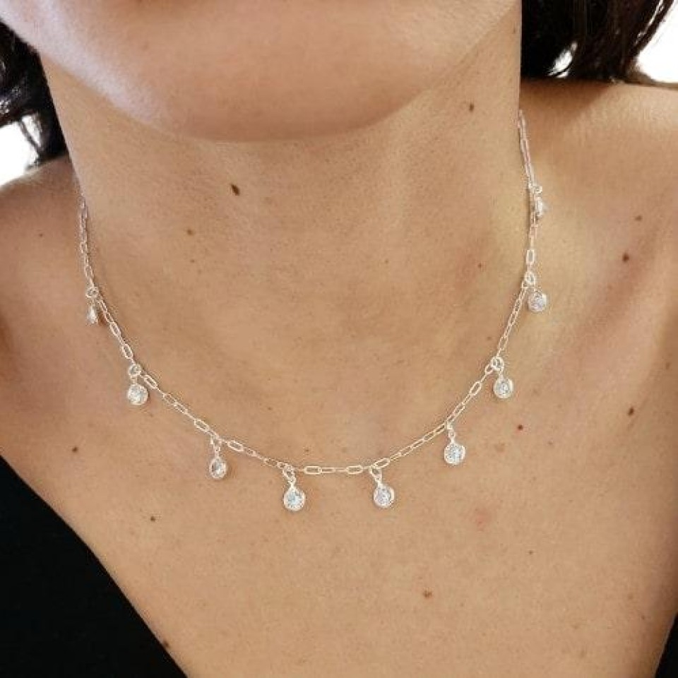 Colar Chocker Cristal Pendurado Prata 925Confira opiniões e avaliações de clientes!